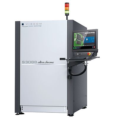 The S3088 ultra chrome is based on Viscom’s unique 3D AOI technology, and combines accurate defect detection with high inspection speed. This makes the system the first choice for efficient SMT production. Some of the market-leading features of the S3088 ultra chrome include inspection speed of up to 65 cm²/s and 65 mega pixels of information in each 50 mm x 50 mm field of view. The resolution is switchable, and with 10 µm per pixel even 03015 components can be reliably inspected. Together with the eight angled-view cameras, a virtually shadow-free 3D inspection is one of the key advantages of the system.