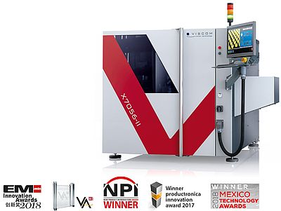 The award-winning X7056-II automatic 3D X-ray inspection system features extremely high throughput and superb image quality for the requirements in high-end electronics production. This AXI in-line system can ensure precise inspection of hidden solder joints and components in high-volume production. It is equipped with the xFastFlow transport module, which cuts printed circuit board changing times. With this feature, up to three boards can be processed at the same time. The new handling design also means that significantly larger board sizes can be inspected and the scope of angled radiation is extended.