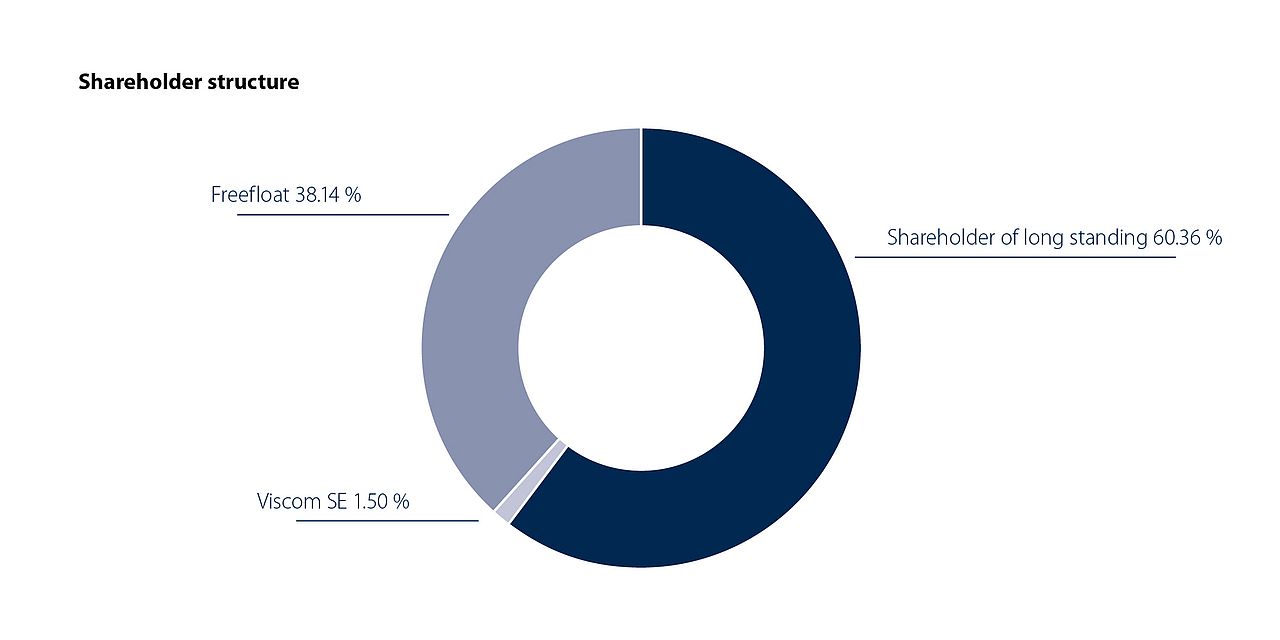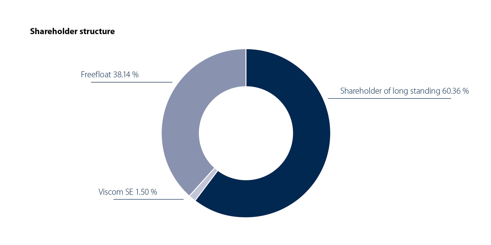 The strong commitment of Viscom SE's founders, Dr. Martin Heuser and Volker Pape, characterizes the Company's shareholder structure. 60.36 % of the shares are attributed to Dr. Heuser and Mr. Pape via intermediary companies and foundations or are held directly by them. Viscom SE owns 1.50 % of its own shares, which the company bought back in 2008/2009 as part of a share buy-back programme. The 38.14 % of shares that are free floating are spread principally among investors in Germany and other European countries.