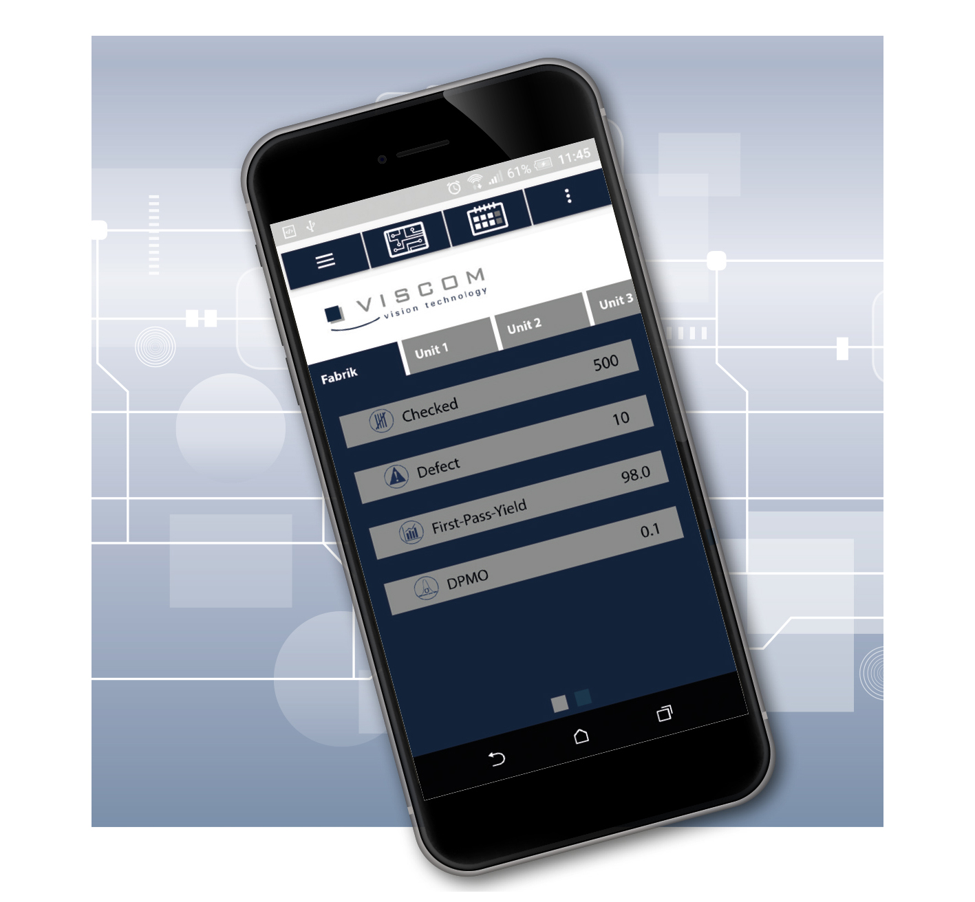 The Viscom app transforms the smartphone into a future-oriented tool in the sense of Industry 4.0, Smart Factory and Big Data handling. This mobile application delivers the results from each Viscom inspection system equipped with the coming vVision 2.4 software.