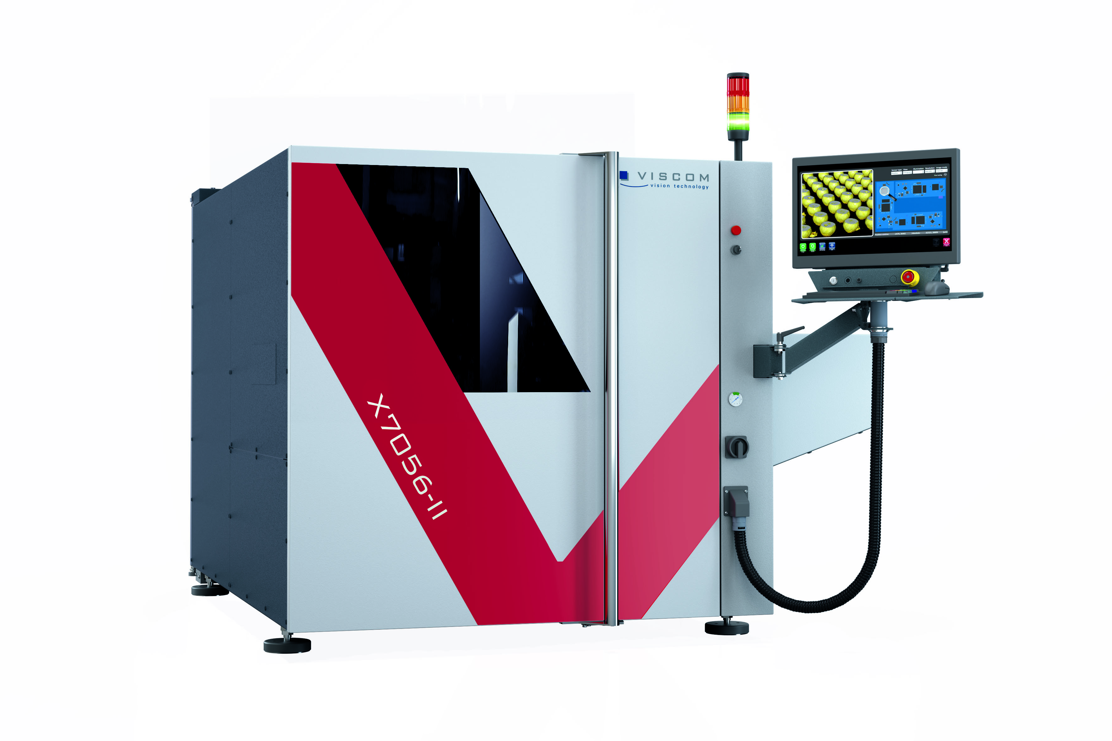 The X7056-II was designed according the latest Industry 4.0 and smart production requirements. It comes with a whole array of new intelligent and interconnected software tools facilitating full line integration and smart statistical process control. The system is equipped with xFastFlow, Viscom’s latest innovation for high-speed handling. Three PCBs can now be processed simultaneously, reducing the handling time (board infeed and outfeed) to under four seconds. Due to the time saved, 3D inspections, which used to be done selectively, can now be expanded from selected components to almost a 100% 3D inspection within line cycle time