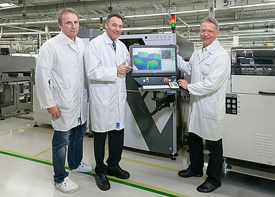 The paste inspection with 3D also has proven its worth at DELTEC: "With this inspection technology, we are handed information about volume, paste height and other aspects and suddenly see, there are actually differences between one and another of the components which could not be determined in any other way," states Fischer. DELTEC deploys the automatic data exchange from Viscom (Closed Loop) between the Viscom S3088 SPI solder paste inspection systems and the Panasonic SP18 stencil printers in their lines. Depending on the solder paste offset values determined by the 3D SPI system, the print offset is automatically corrected over several printed circuit boards. With this approach, instead of in one single step, an offset is corrected in several intermediate steps. This method achieves the optimum result.